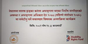 Interaction program on the Status ofConflict- Disabled Citizens in Nepal and Amendments to the Disability Rights Act 2074