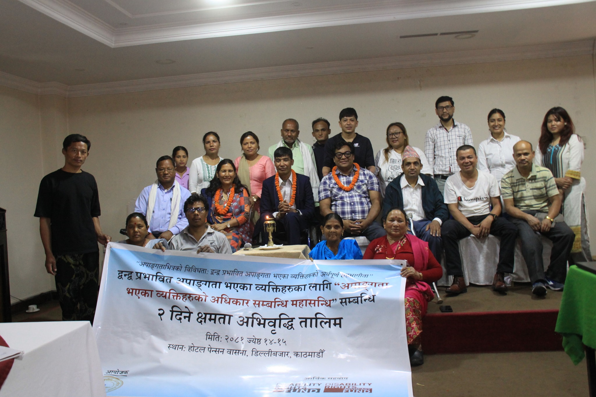 Hotel Pension Vasna Dillibazar, Kathmandu, NepalThe two-day training titled "Capacity Building Training on CRPD" with an objective to build the capacity of NNDCV board members and staff was held at Hotel Pension Vasna, Dillibazar from May 27-28, 2024. The theme of this training is Diversity in Disability: Meaningful Participation of Conflict- Affected Persons with Disabilities.” There were 22 participants from...